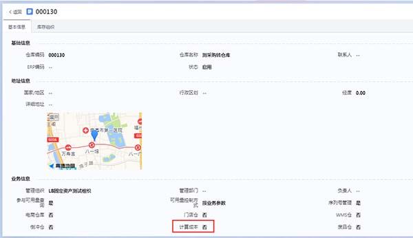 2. 增加倉庫,業(yè)務(wù)信息計算成本為否。