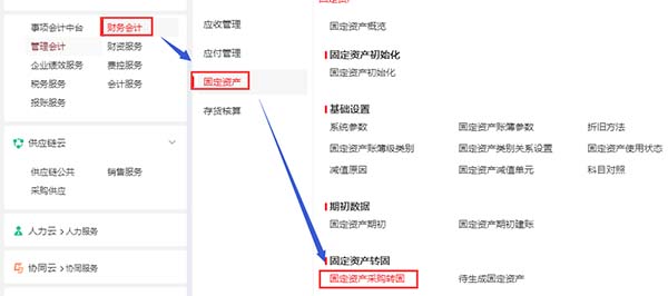 操作路徑:財務(wù)云 > 財務(wù)會計 > 固定資產(chǎn) > 固定資產(chǎn)轉(zhuǎn)固> 固定資產(chǎn)采購轉(zhuǎn)固
