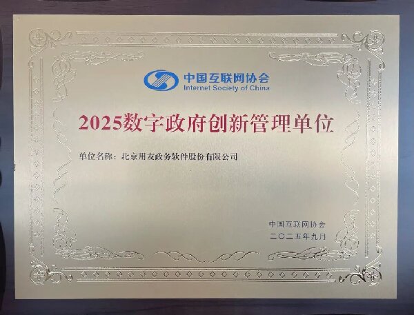 用友政務(wù)榮獲“2025數(shù)字政府創(chuàng)新管理單位”