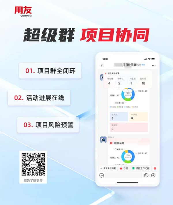 項目管理需要高度的協(xié)同與配合。超級群支持自動建群功能,項目立項后自動創(chuàng)建對應項目群,并同步預置項目助手機器人。項目成員可以在群內(nèi)查看或編輯項目活動進展、填寫項目風險等信息。機器人還會定時推送項目活動情況和風險提醒至群中,確保項目成員能夠隨時掌握項目動態(tài)。此外,超級群還支持項目文檔的在線編輯與共享功能,讓團隊成員能夠隨時隨地進行協(xié)作,提升項目管理的效率和準確性。