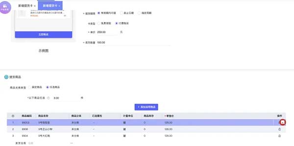 1、新建提貨卡:設(shè)置任選*件--添加可被選擇的商品(多條)