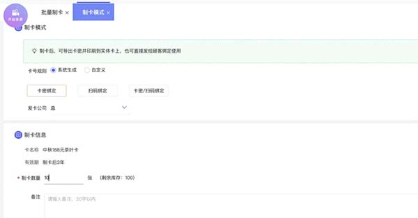2、提貨卡-批量制卡,用于線下提貨卡的印刷和售賣