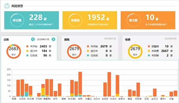 自動(dòng)監(jiān)測(cè)財(cái)務(wù)進(jìn)度,實(shí)時(shí)預(yù)警財(cái)稅風(fēng)險(xiǎn),幫助管理層及時(shí)掌握進(jìn)展和員工工作情況,進(jìn)而確保代賬服務(wù)質(zhì)量;