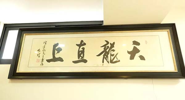走進(jìn)天龍美材的辦公室,一幅蒼勁有力的毛筆字躍入眼簾——“天龍直上”四個大字氣勢磅礴。