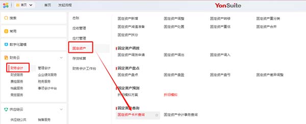 1、【財(cái)務(wù)云-財(cái)務(wù)會(huì)計(jì)-固定資產(chǎn)-固定資產(chǎn)查詢】節(jié)點(diǎn),在卡片折舊信息點(diǎn)擊折舊預(yù)測(cè);