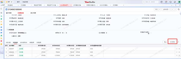 6、完成折舊模擬并聯(lián)查折舊模擬明細(xì),查看完整折舊情況。